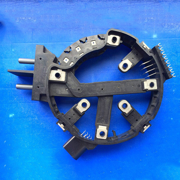用于汽车发电机内整流桥结构件,我司汽车调节器碳刷架整流桥已有1400余种,我司生产的调节器碳刷架、整流桥质量优越稳定,可配套各类汽车发电机起动机。