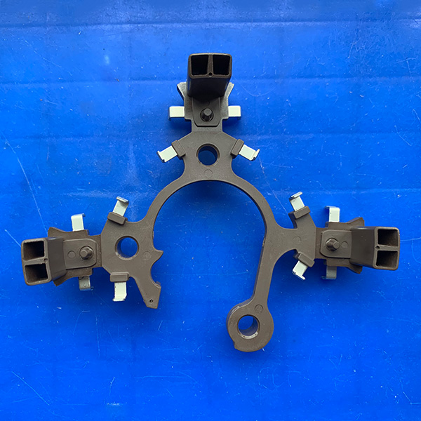 用于汽车发电机内整流桥结构件,我司汽车调节器碳刷架整流桥已有1400余种,我司生产的调节器碳刷架、整流桥质量优越稳定,可配套各类汽车发电机起动机。