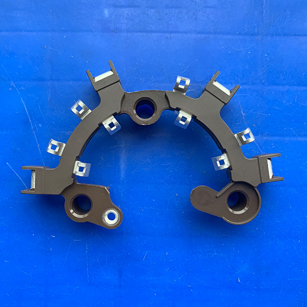 用于汽车发电机内整流桥结构件,我司汽车调节器碳刷架整流桥已有1400余种,我司生产的调节器碳刷架、整流桥质量优越稳定,可配套各类汽车发电机起动机。